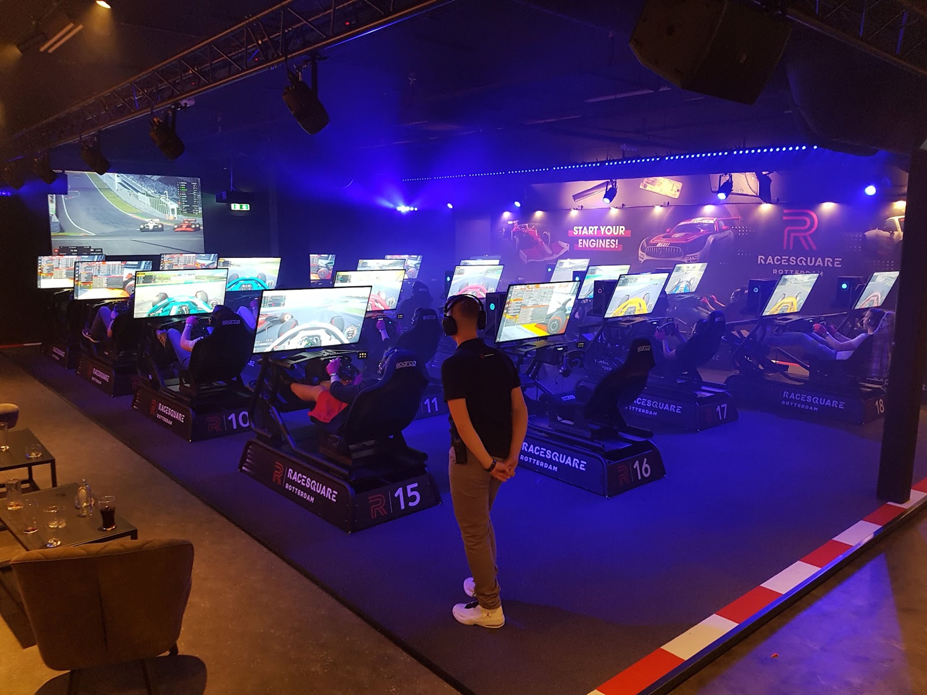 Racesquare Rotterdam dispone di sessanta simulatori statici e quattro simulatori di movimento distribuiti su più livelli per gli appassionati di Formula 1.