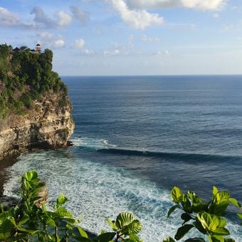 Il complesso del tempio si erge a 70 metri sopra l'Oceano Indiano su una scogliera calcarea nel punto sud-occidentale della penisola di Bukit.