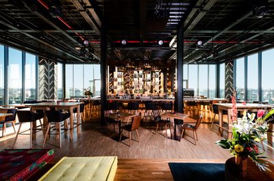 L'edificio su Mercedes Platz è stato costruito specificamente per scopi gastronomici e ha ospitato questo bar sul tetto sin dalla sua apertura, subendo diverse modernizzazioni per soddisfare gli standard contemporanei.