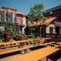 Motor City Brewing Works presenta una terrazza distintiva sul tetto che offre esperienze di consumo all'aperto con vista sullo skyline di Detroit, combinando elementi di design industriale rustico con pareti di mattoni a vista e accenti in legno in tutto l'establishment.