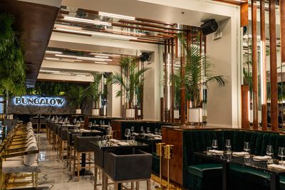 Il Bungalow presenta molteplici spazi per la ristorazione che includono sezioni private intime e aree comuni, completati da un patio sul tetto con vista sullo skyline del centro di Houston.