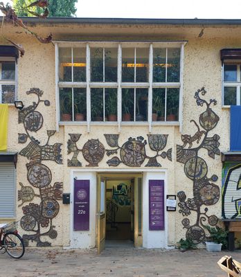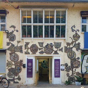 Mosaic Hasselwerderstr 22a, facade design by Leni Schamal in Berlin-Niederschöneweide, Germany