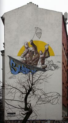 Fishing for diamonds, mural on the Torstraße 130 in Berlin-Mitte, Germany