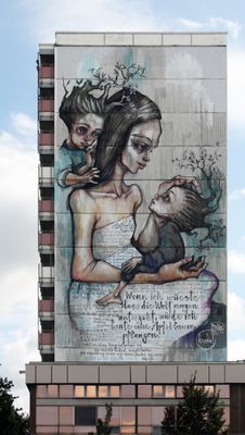 Wenn ich wüsste, dass die Welt morgen untergeht, würde ich heute einen Apfelbaum pflanzen, mural by Herakut in Berlin-Prenzlauer Berg, Germany