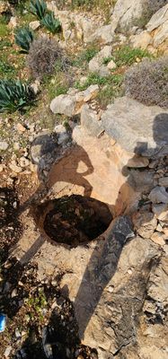 בור מים של לאורת חביבי. הפתח המסותת שלו נמצא במדרון מתחתיו כ-5 מטרים.