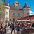 Il Marché d'Aubenas è un mercato settimanale nel centro storico dove i produttori locali vendono frutta fresca, verdure, erbe e articoli fatti a mano. Le bancarelle sono disposte vicine tra loro in uno spazio aperto, circondato da strade strette e edifici storici in pietra.