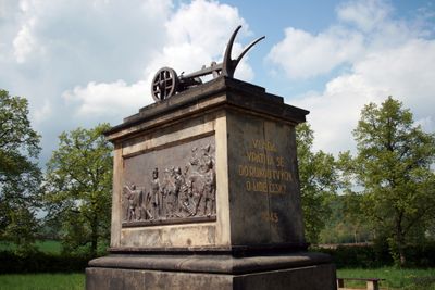 Royal field with the monument to Přemysl, the Ploughman, Monumento culturale nazionale a Stadice, Repubblica Ceca.
