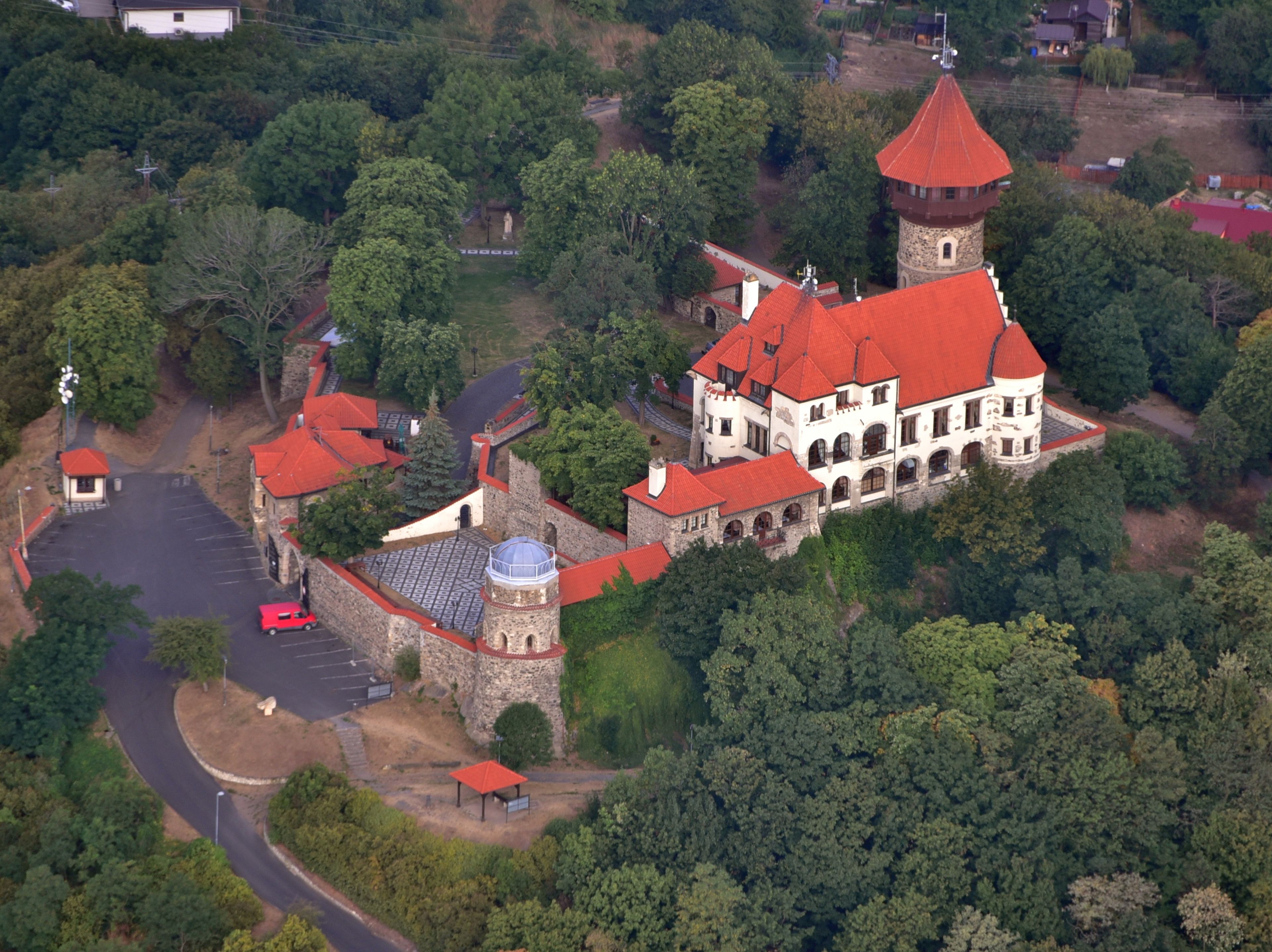 Il castello include una torre alta 21 metri con 118 gradini che conducono a una piattaforma di osservazione con vista sulle montagne Krušné e sulla regione.