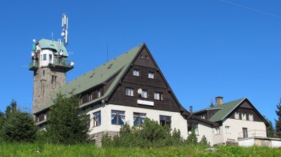 La torre offre viste su tre paesi: le montagne Jizera della Repubblica Ceca, sezioni della Polonia e parti della Germania.