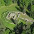 Le fondamenta in pietra e le mura rimanenti di Kozí Hrádek si estendono su una collina, rivelando la disposizione di una struttura difensiva medievale del XIV secolo.