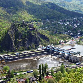 La struttura sorge vicino al Castello di Střekov, creando un contrasto visivo tra fortificazione medievale e ingegneria industriale.