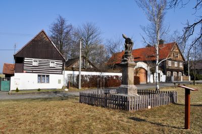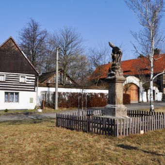 Mariánský sloup na návsi v Chcebuzi