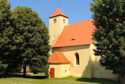 La Chiesa dell'Assunzione della Vergine Maria presenta un'architettura gotica tardiva con presbiterio pentagonale e torre prismatica nell'elevazione principale.