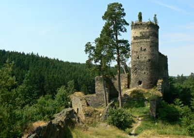 Gutštejn Castle, Rovine di castello gotico a Okrouhlé Hradiště, Repubblica Ceca.