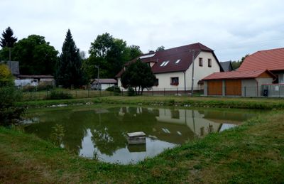 Kříž u rybníka Pod Kopcem u hlavní silnice západně od Hosova