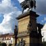 La statua in rame si erge al centro della piazza, raffigurante Re Giorgio di Poděbrady a cavallo in stile Rinascimentale.