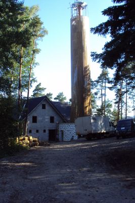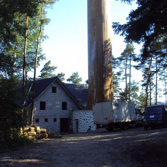 La struttura in acciaio alta 33 metri, rivestita in doghe di legno, presenta 150 gradini grigliati che conducono alla piattaforma di osservazione.