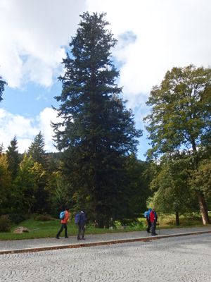 Jedle v lázeňském parku nad Pitným pavilonem, memorable tree in Bruntál District, Czech Republic