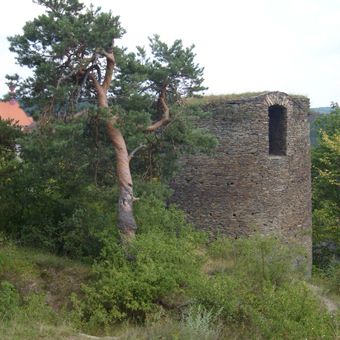 I muri di pietra e le fondamenta rimangono della struttura originale del castello, posizionato su una collina che domina la valle del fiume Střela.