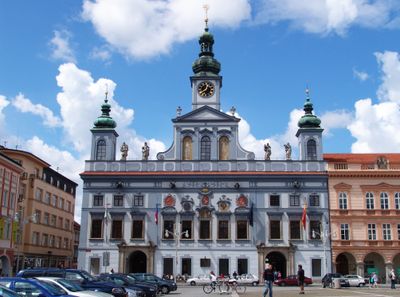 Town hall in České Budějovice, Municipio barocco nella Piazza Přemysl Otakar II, Repubblica Ceca.