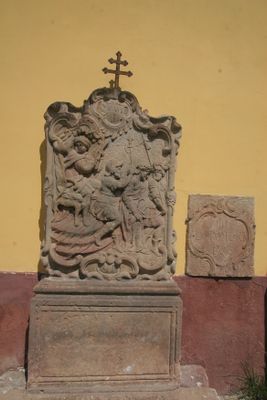 Socha Panny Marie u vjezdu do hradu Pecka