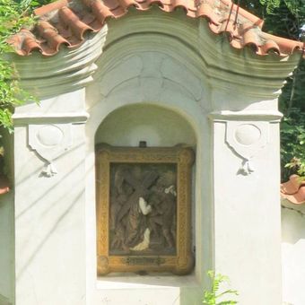 Kapličky Křížové cesty na ohradní zdi kostela ve Vraném