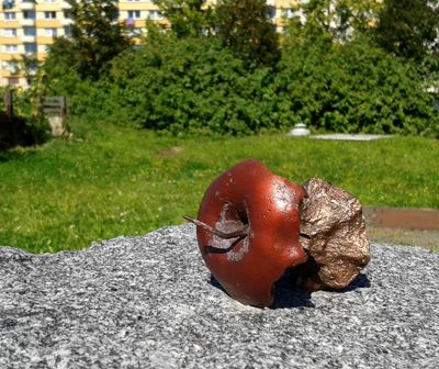 Il memoriale consiste in un torsolo di mela in bronzo montato su un piedistallo di granito, creato dallo scultore Michal Trpák.