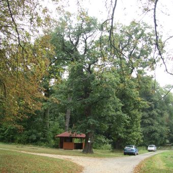 Skupina dubů v oboře, group of memorable trees in Třebíč District, Czech Republic