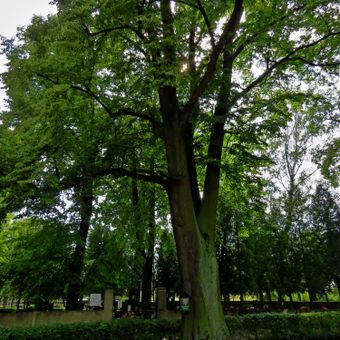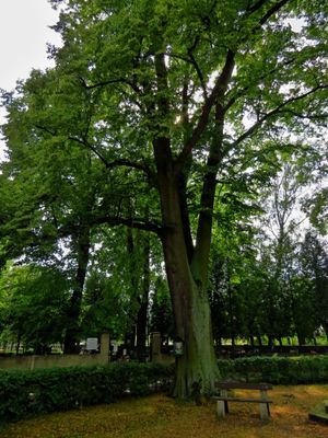 Lípa ve vstupním prostoru hřbitova v Opočně, memorable tree in Rychnov nad Kněžnou District, Czech Republic