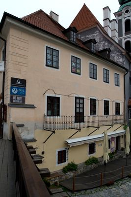 Mostní přechod mezi zámeckou věží a čp. 58 v Českém Krumlově-Latráně