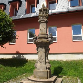 Sousoší Svaté Trojice v Bušíně ve středu obce