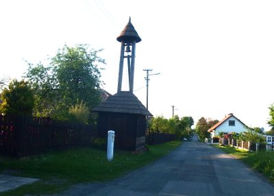 Dřevěná zvonice u silnice v Podolí