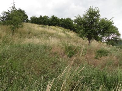 I resti di Hrádek includono un fossato circolare e un terrapieno posizionati su una collina di 22 metri sopra il margine orientale di Libomyšl.