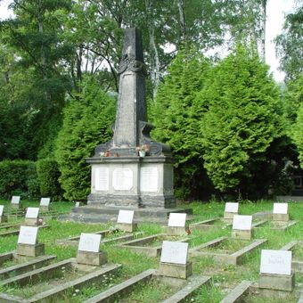 Pomník padlým rudoarmějcům na hřbitově v Mostě