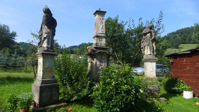 Boží muka před kaplí sv. Jana Nepomuckého v Klepáčově