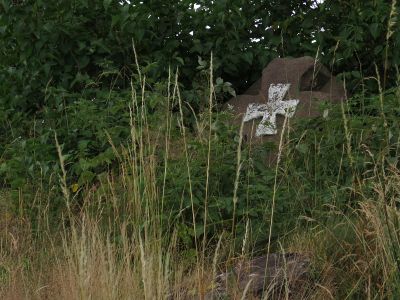 Smírčí kříž v lese nad tratí poblíž zastávky Tample