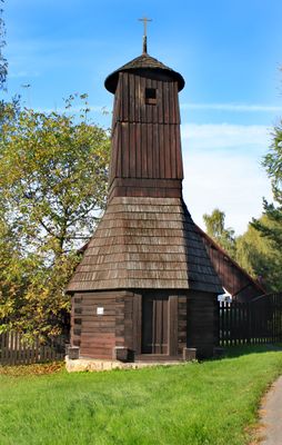 Lo Zvonice è un campanile tradizionale in legno che presenta elementi architettonici tipici degli edifici religiosi nelle regioni rurali ceche.