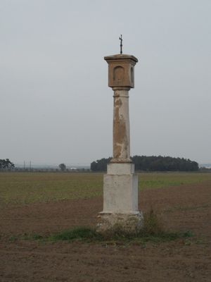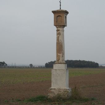 Boží muka v poli u silnice z Hradišťka do Veltrub