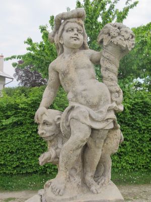 Socha Venuše s Kupidem v zahradě zámku v Lysé nad Labem