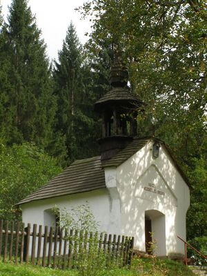 Kaple svatého Huberta u údolní komunikace ve Velkých Karlovicích, místní části Pluskovec
