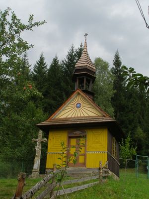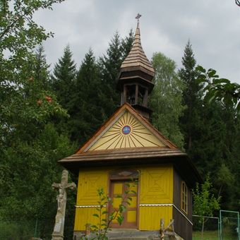 Dřevěná kaple svatého Cyrila a Metoděje u silnice v osadě Hlavatá