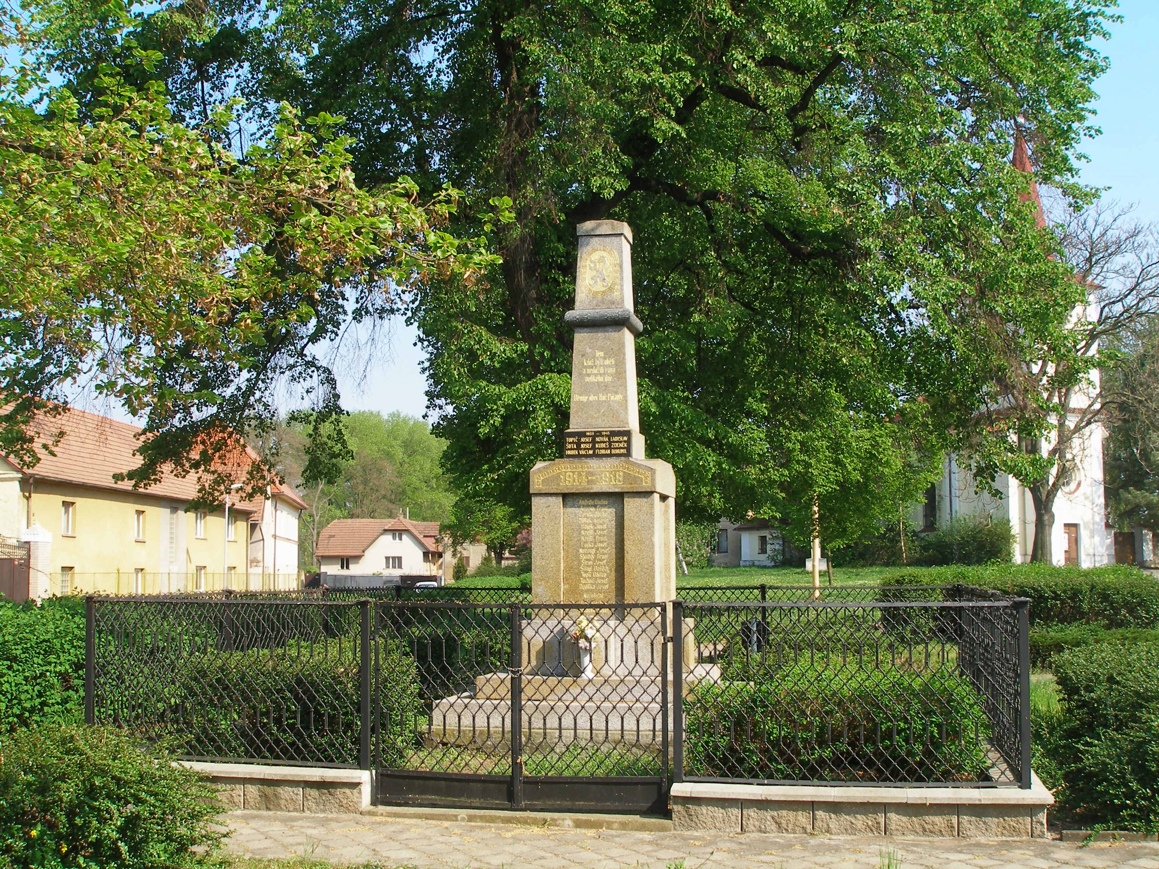 Pomník padlým u kostela v Horních Počaplech