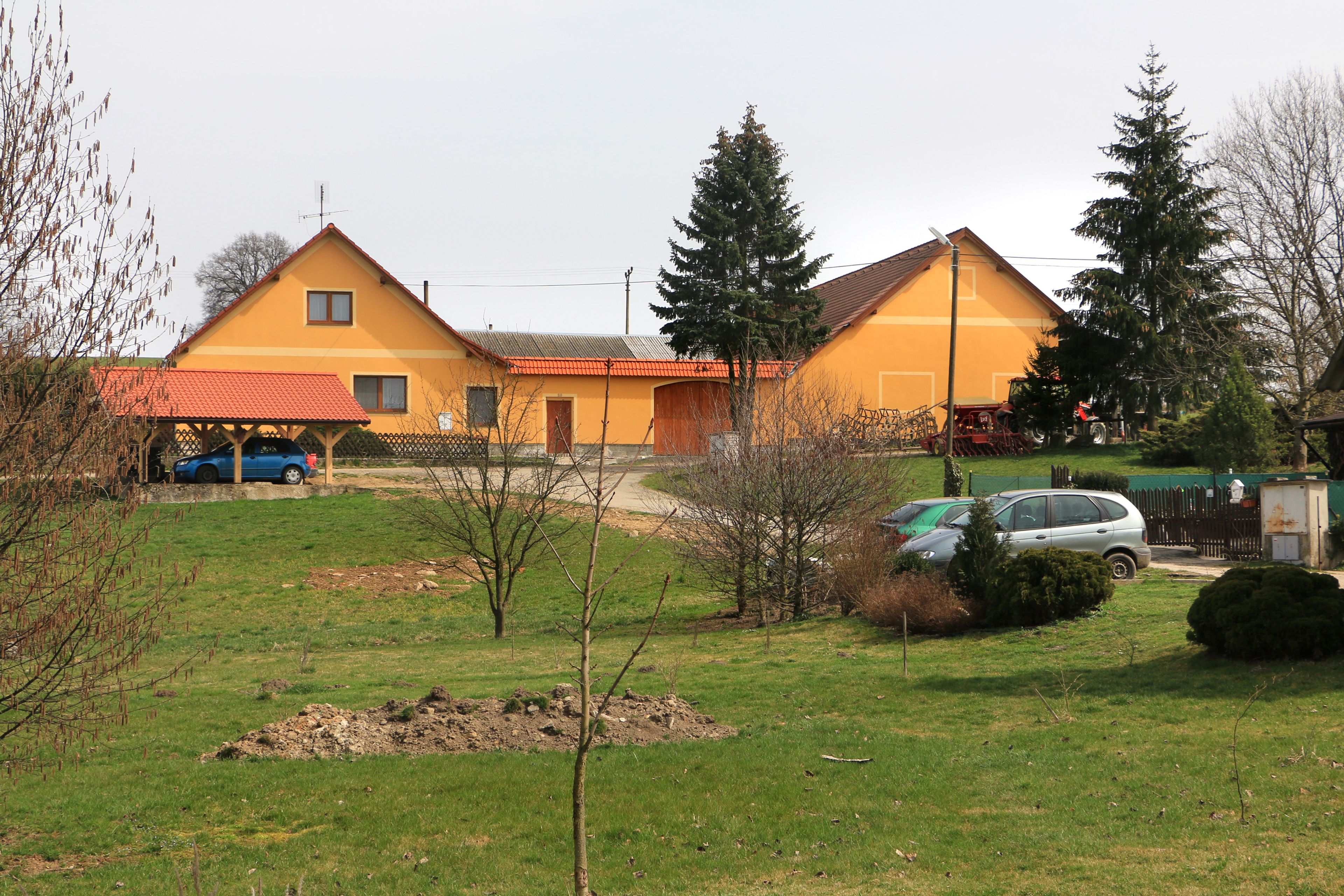 Kříž v zahradě v Psárově na návsi