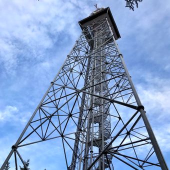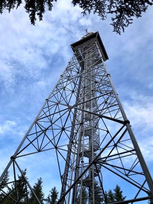 La torre in ferro si erge sopra le foreste della regione Žďárské vrchy, offrendo vedute delle colline e delle valli da diverse piattaforme.