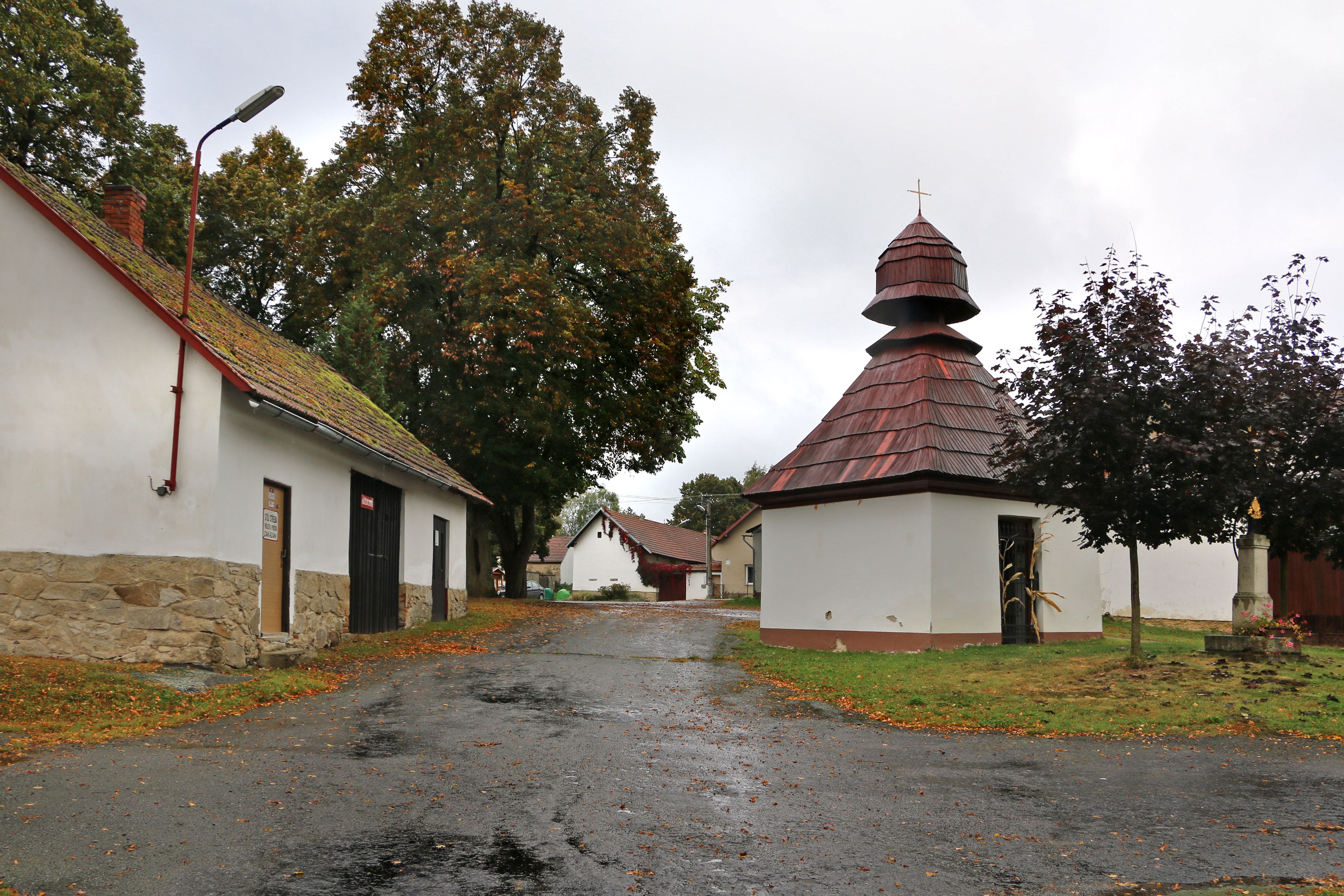 Kříž před kaplí v Mezné