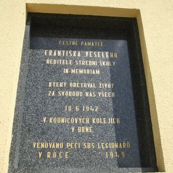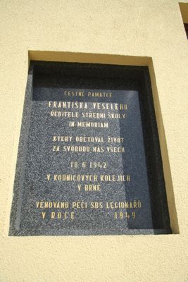 Plaque of František Veselý, pamětní deska v Náměšti nad Oslavou
