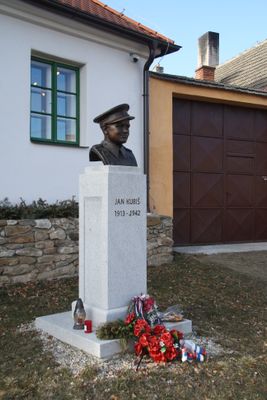 Pomník Jana Kubiše před jeho rodným domem v Dolních Vilémovicích, monument in Dolní Vilémovice, Czech Republic