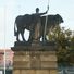 Socha býka s honcem v Holešovicích u bývalých jatek
