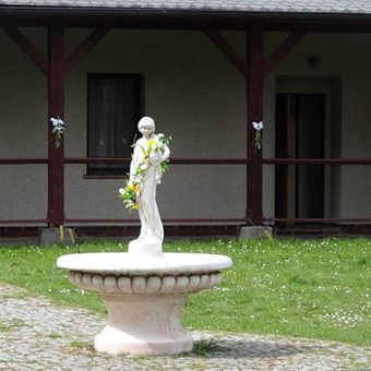 Kašna na nádvoří zámečku Tři trubky, kašna v obci Strašice, okres Rokycany