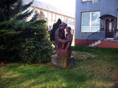 Socha v Křimicích u školy